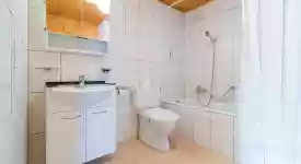 Eine sehr helle und heimelige Küche mit Essecke - einfach zum Wohlfühlen. Schöne Aussicht auf die Berge - bei einem guten Glas Wein. Ein heisses Bad darf auch an kalten Wintertagen nicht fehlen.